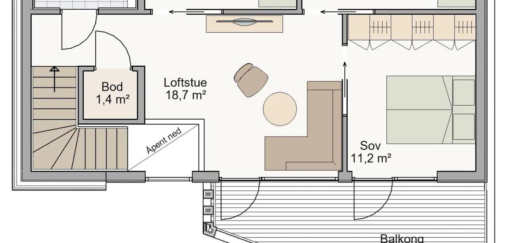 Form 2.0 er spesielt egnet for smale tomter, med sin bredde på 6,4 meter og et bebygd areal på under 100 kvadratmeter. Balkongen i andre etasje er fleksibel og kan tilpasses både etter tomten og dine ønsker og behov. Fleksibiliteten til Form 2.0 gjør det mulig å tilpasse huset til forskjellige tomter og konfigurasjoner, enten det er som enebolig, tomannsbolig eller enebolig i rekke.
