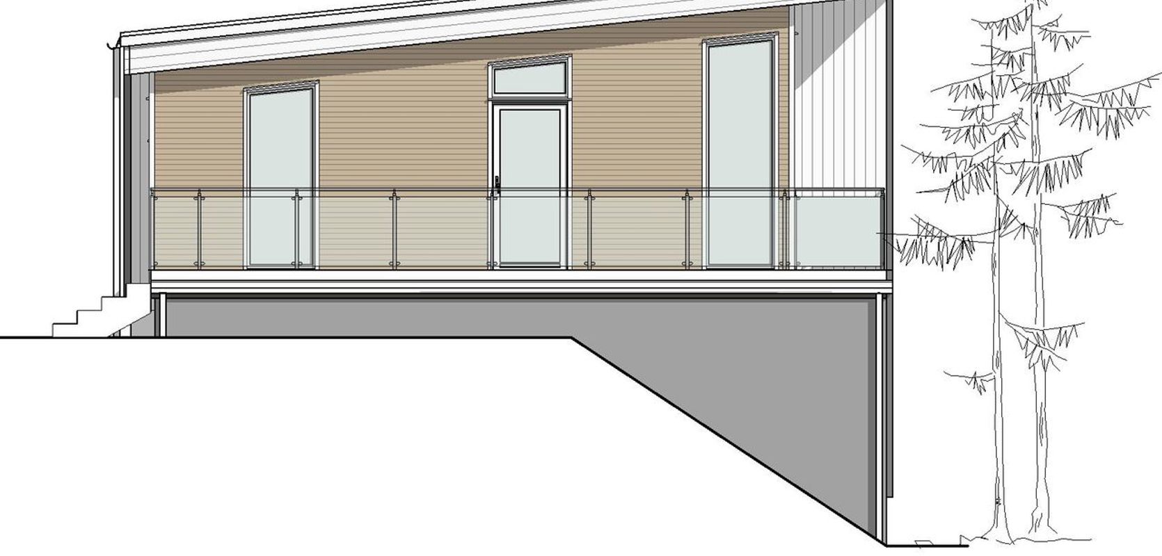 Opplev det moderne designet til denne store eneboligen med en spennende og stram fasade, preget av rene linjer og store vindusflater. To balkonger og terrassen er omgitt av glassrekkverk, som skaper en spennende kontrast til den liggende kledningen i tre.